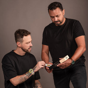 A Skin Ink nasceu da visão de dois brasileiros que compartilham a mesma paixão pela tatuagem e pela inovação. Emilio Cerchiari, tatuador com mais de 30 anos de experiência, e Guilherme Guarnieri, especialista em desenvolvimento de produtos, comércio internacional e importações, uniram seus conhecimentos para criar uma marca que realmente entende tanto o lado artístico quanto o lado técnico da indústria da tatuagem.